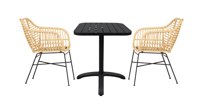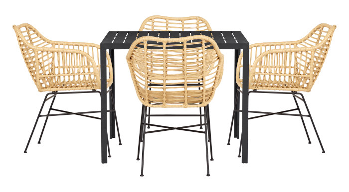 • Hagestol Livorno i bambus look, er laget av en svart metallramme og rotting i naturlig farge