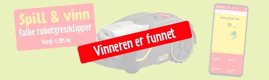 13. april 2026Vi har trukket vinneren av en robotgressklipper fra Falke til en verdi av 6.995 kr. og den heldige vinner ble Christopher fra Helle.