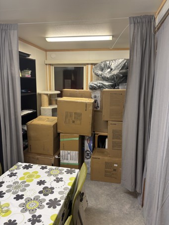 De frivillige river seg i håret over kaos og plass-mangel! Vi trenger hjelp til å lage et rom med gode oppbevaringsmuligheter til alle de flotte donasjonene vi får.