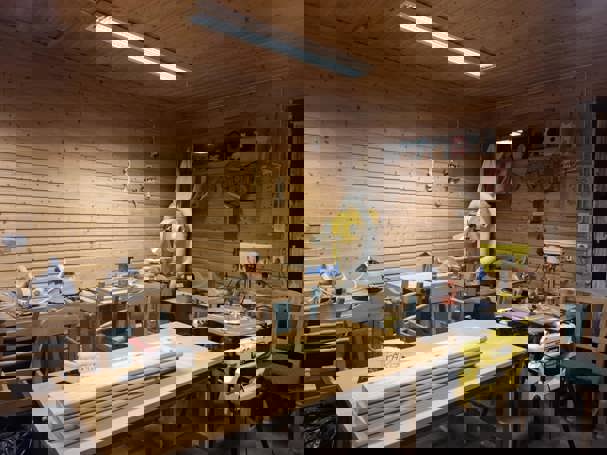 Mestre gleden ved trearbeid for barn og unge.